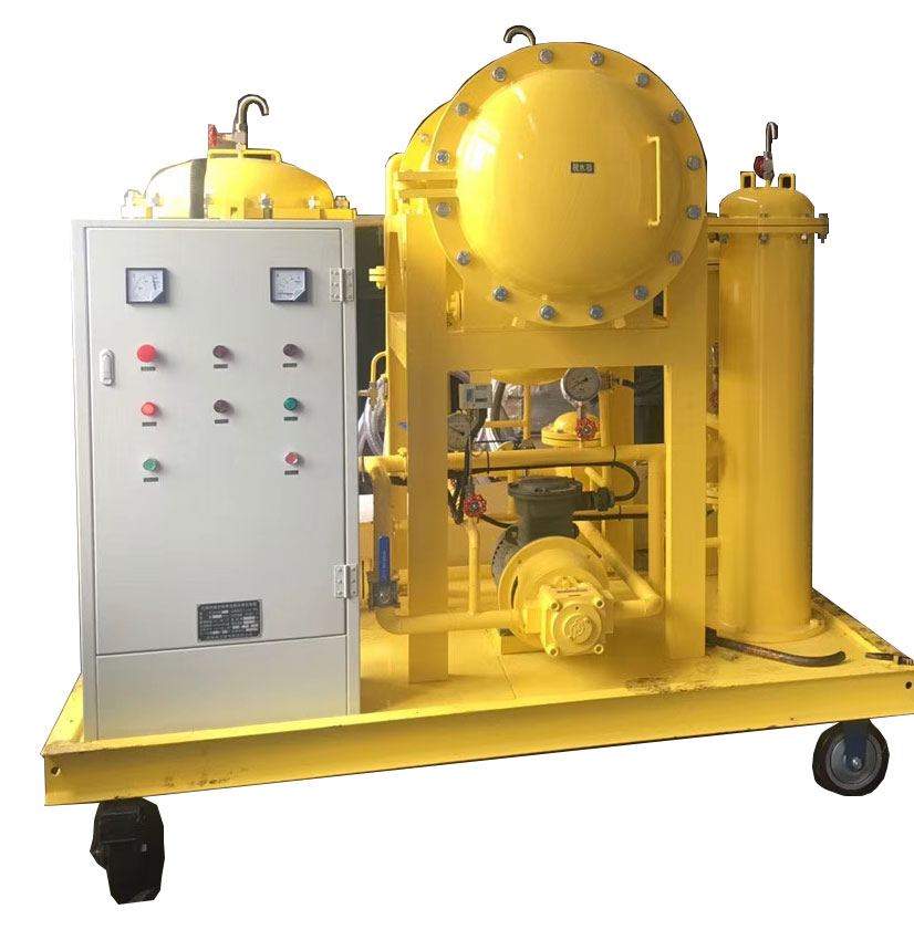 特別注意:在冬天使用時管路、真空罐等部件應選用保溫辦法,在變電站濾油時還必須同時遵守電力工業頒布的電業安全工作規程中的有關規定。91视频入口观看工作時,需要過濾的油液在外界大氣的作用和真空抽吸的作用下吸入強磁過濾器,大顆粒雜質被濾除,油液經過加熱器加熱後進入多級聚結分水過濾器,因分水過濾器采用了強化親油疏水技術,改善了油水兩相界麵的相互作用力,使油中的細小水滴加速運動,並聚結成大水滴從油中分離析出,沉澱於純儲水器中,去除雜質的油液進入三維立體真空閃蒸塔,經過噴淋裝置,油琳在閃蒸鮑爾環上使油液產生較大的曝氣麵積和較長的滯留時間過程,進行充分的油、氣分離過程,除去油中殘餘的微量水份和氣體。